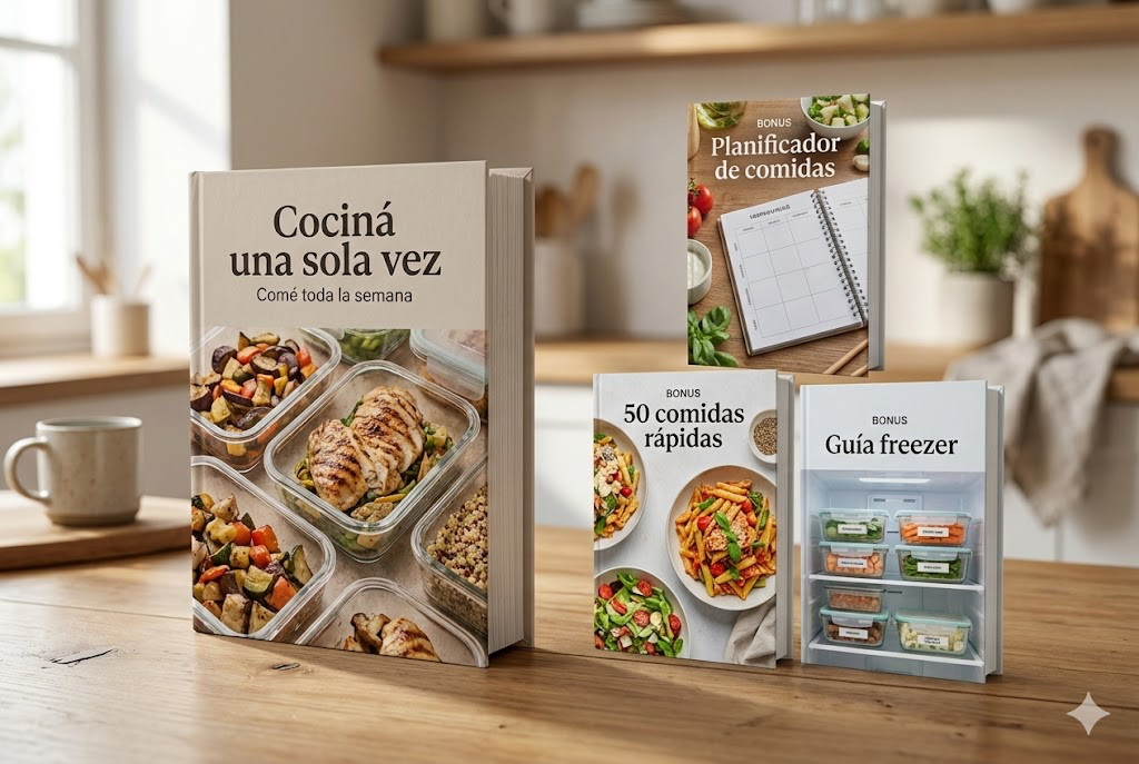 Es el complemento ideal del ebook y del planificador, porque te permite cocinar una vez y resolver toda la semana sin preocuparte por la conservación.