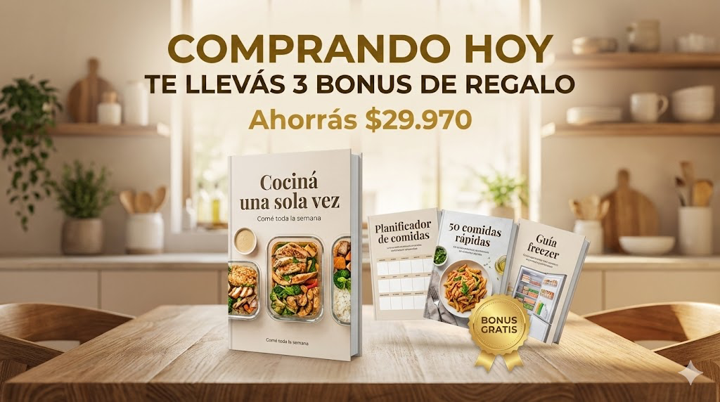 También vas a descubrir cómo rotular, porcionar y ordenar tu freezer para que cocinar una sola vez te alcance para varios días sin perder tiempo ni comida.